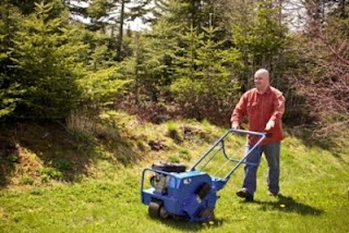 We've finally had some lovely weather and are enjoying spring. With the enjoyment, comes some chores, however. Here's dd aerating the back yard. A neighbour rented the aerator for the day and almost everyone on the street did their lawn. I'm looking forward to some more green to go with the lovely yellow dandelions that have started to show their heads.